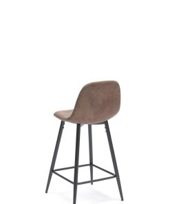 Sgabello alto fisso con 4 gambe d’appoggio e poggiapiedi, realizzato in metallo con scocca imbottita e rivestita in similpelle effetto invecchiato, fruibile in 3 colori: tortora, marrone e moka.