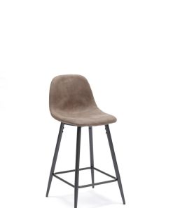 Sgabello alto fisso con 4 gambe d’appoggio e poggiapiedi, realizzato in metallo con scocca imbottita e rivestita in similpelle effetto invecchiato, fruibile in 3 colori: tortora, marrone e moka.