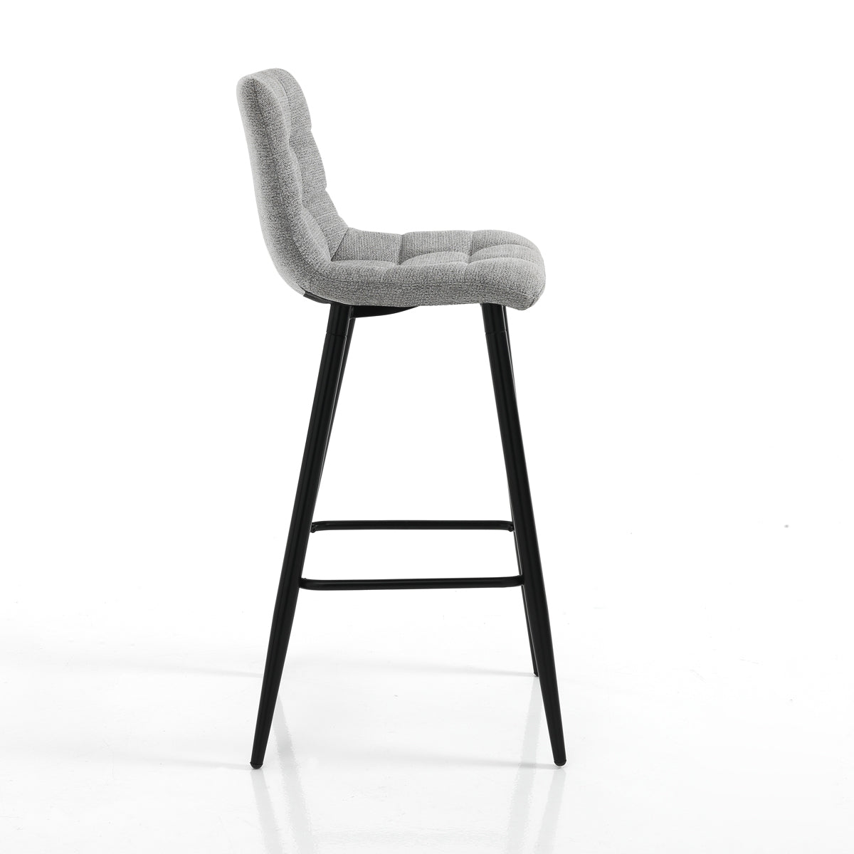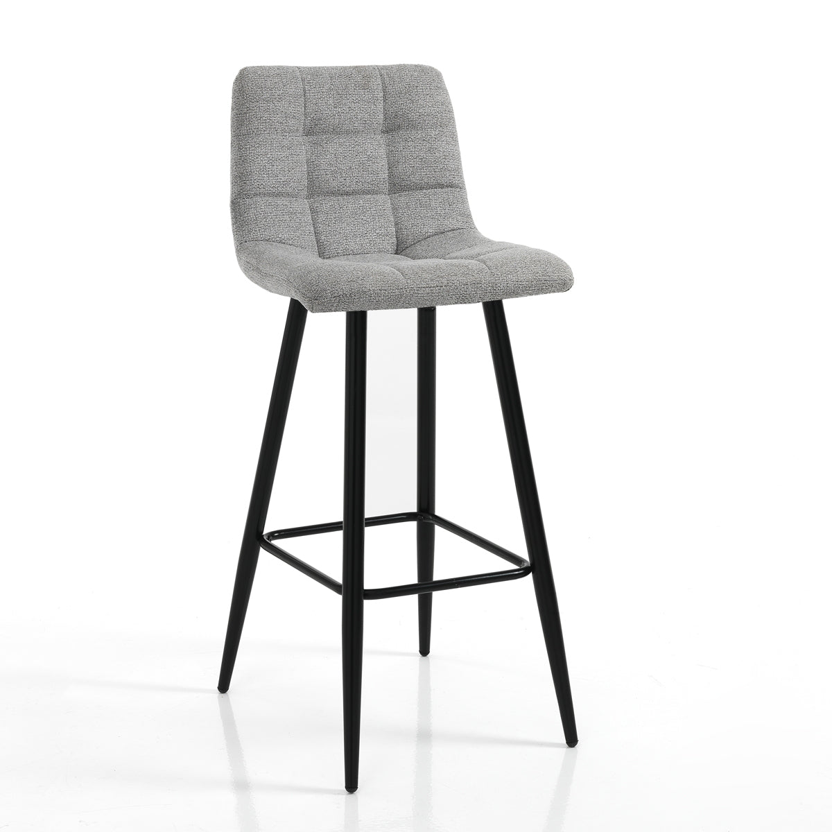 Sgabello alto e fisso progettato per chi cerca una seduta comoda per completare la propria cucina o il bar. Il nostro sgabello infatti, presenta una seduta comoda e soffice, imbottita e dotata di schienale, rivestita in tessuto grigio con caratteristica trapuntatura a quadri.