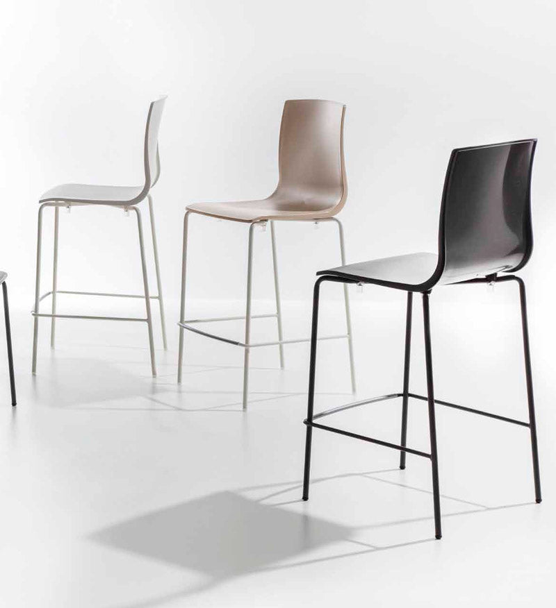 Sgabello fisso e alto composto da struttura in metallo e scocca in polipropilene. Il nostro sgabello da bar è ideato come seduta pratica e comoda adatta per qualsiasi uso che sia domestico o contract.