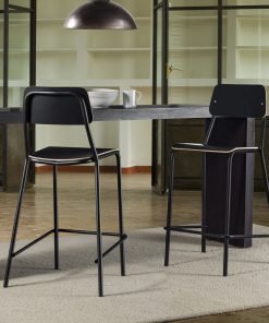 Sgabello alto composto da struttura in metallo con schienale e seduta in legno multistrato. Uno sgabello come questo si offre per rendere più funzionale la tua zona cucina, utile per accomodarsi davanti alla tua penisola per gustare la colazione o altro. Affidabile e robusto, il nostro sgabello è realizzato in affascinante colore nero e ricalca un design molto richiesto tendenzialmente classico ma che assicura sempre una posizione comoda.