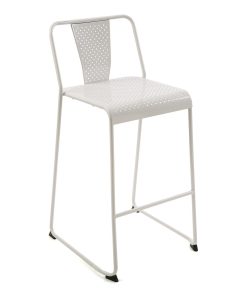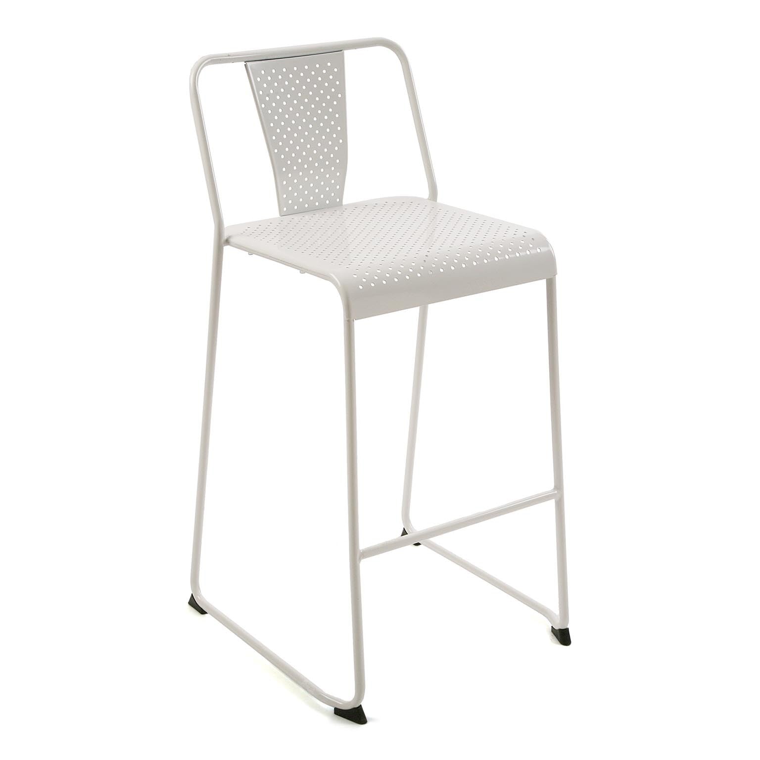 Set da 2 sgabelli realizzati interamente in metallo. La composizione è completamente colorata di bianco, con schienale e seduta decorati attraverso piccoli fori. Le forme lineari e la scelta monocromatica di tipo bianco risaltano lo stile moderno, che si adatta facilmente in ogni ambiente.