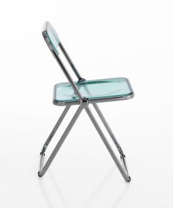 Sedia pieghevole moderna e pratica, realizzata con struttura in metallo e seduta con schienale in policarbonato trasparente, disponibile in vari colori. Questa sedia rappresenta la soluzione versatile e funzionale per eccellenza, potendola riporla quando non serve, con pochissimo ingombro.