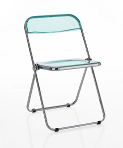 Sedia pieghevole moderna e pratica, realizzata con struttura in metallo e seduta con schienale in policarbonato trasparente, disponibile in vari colori. Questa sedia rappresenta la soluzione versatile e funzionale per eccellenza, potendola riporla quando non serve, con pochissimo ingombro.