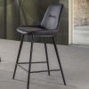 Sgabello alto da bar composta da base in metallo con design a slitta e scocca imbottita e rivestita in ecopelle effetto nabuk Comodo e ricercato, lo sgabello è disponibile in due colori del rivestimento: beige o grigio
