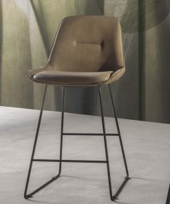 Design, qualità e innovazione sono tutte caratteristiche che troviamo in questo sgabello alto da bar, caratterizzato da una base a slitta in metallo e da scocca imbottita, accompagnata anche da cuscino, con particolare rivestimento in ecopelle effetto nakuk.