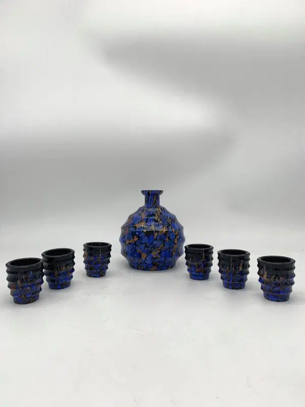 Bellissimo set da caffè e una caraffa di Murano composto da 6 tazzine e una caraffa( zuppiera) con mescolo anche esso in vetro.