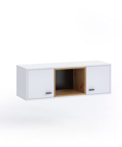 Sevina è un pensile orizzontale realizzato in legno e strutturato con due ante laterali e vano centrale. Sevina è un ottimo punto di partenza per creare una struttura a parete a misura delle tue esigenze, abbinando altri pensili o mobili della linea. La finitura naturale del legno è abbinata al bianco opaco o nero opaco, creando due versioni in bicolore dall’aspetto completamente diverso.