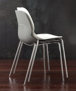 Sedia design Shell Metal con struttura in metallo cromato e seduta in polipropilene disponibile in bianco o grigio. Questa sedia moderna è multifunzione dal momento che potrà essere impiegata per arredare il soggiorno o per allestire il tuo ufficio, sala d’attesa e tanto altro.