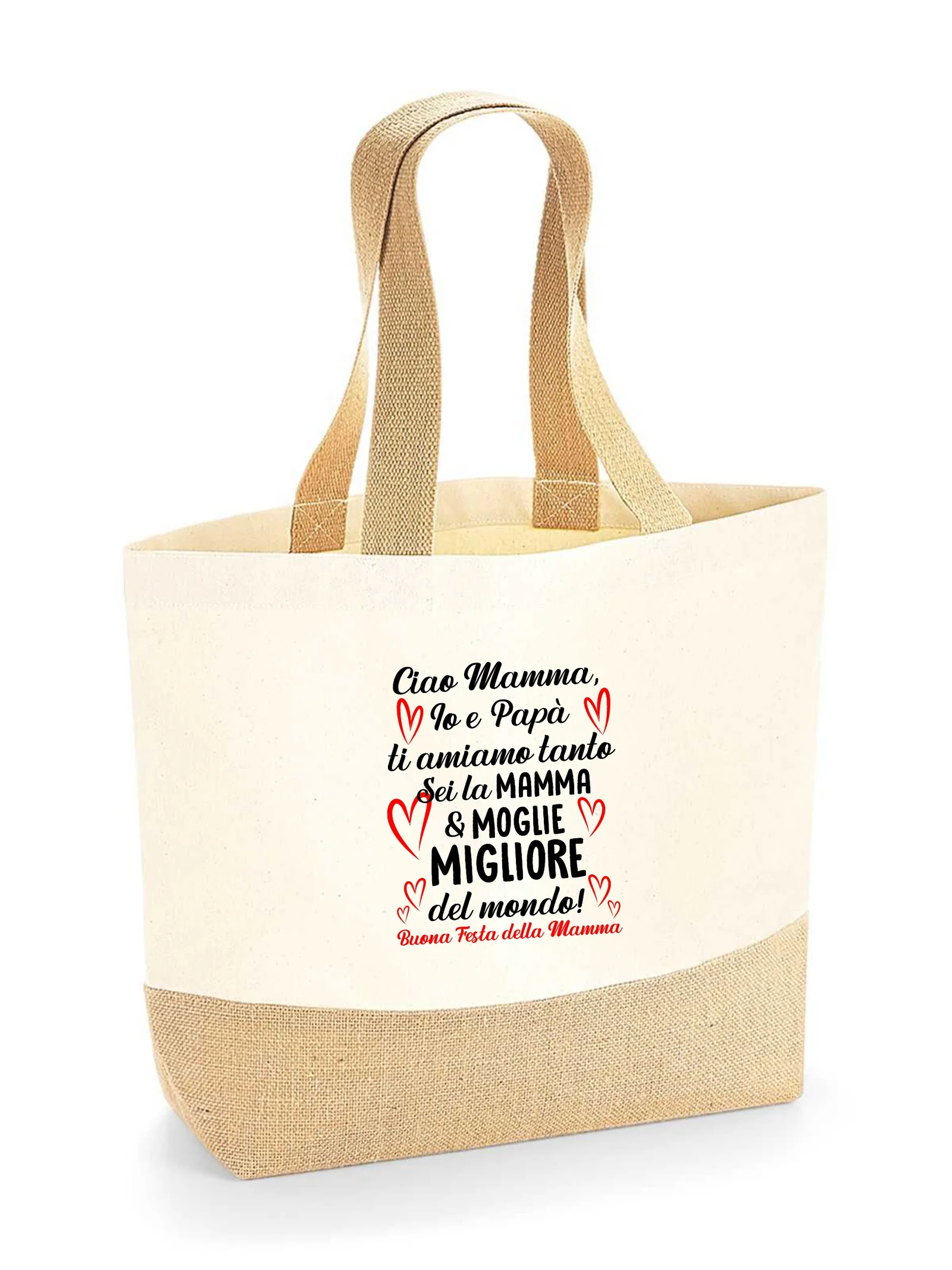 SHOPPER IN COTONE: Simpatica e divertente shopping bag in cotone, ideale per festeggiare la festa della mamma o per fare un regalo unico e originale alla zia, alla madrina, una sorella, una cugina o un’amica in maniera unica e originale.
