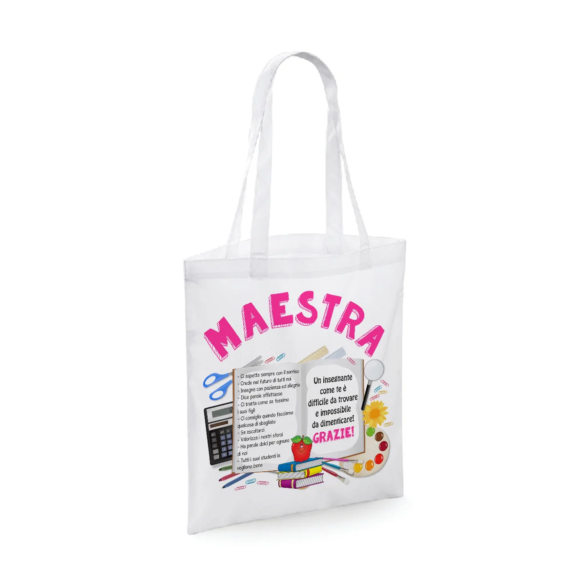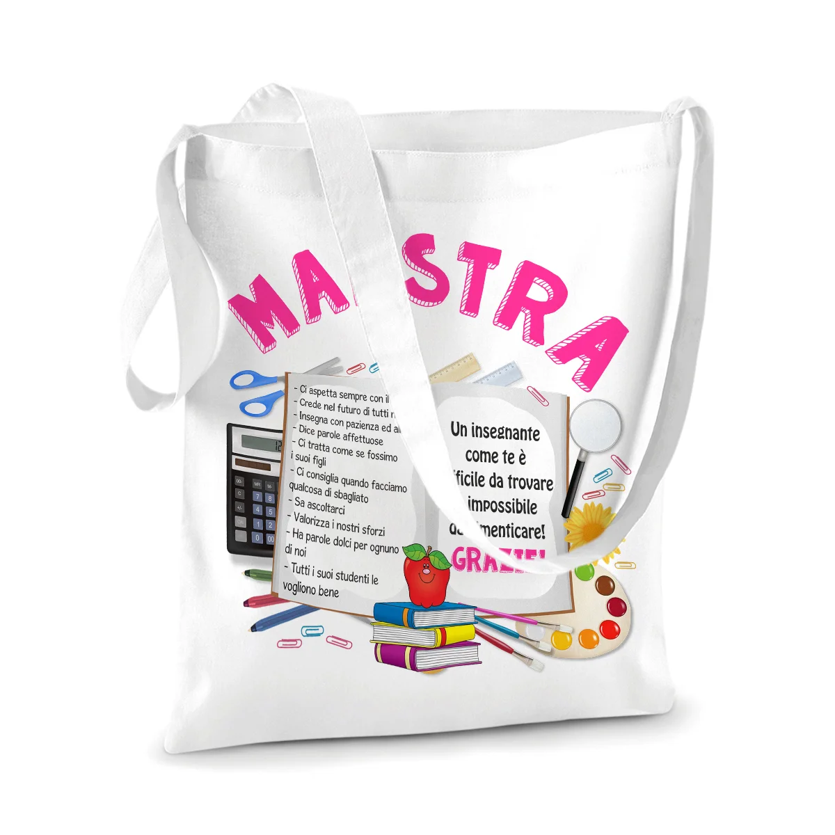 Shopping bag Maestra – un insegnante come te è difficile da trovare e impossibile da dimenticare – idea regalo – dimensioni 40×40 cm