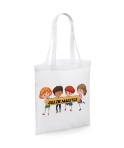 Shopping Bag in cotone Maestra Grazie Maestra – bambini felici – idea regalo fine anno scolatisco