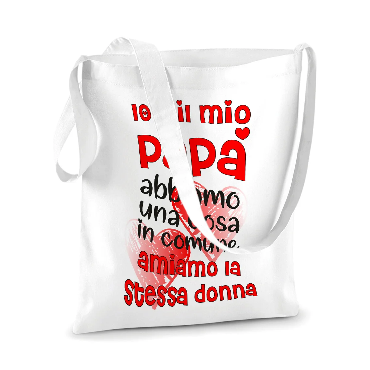 Shopping Bag Regalo Festa della Mamma shopper in cotone Mamma Io e il mio Papà amiamo la stessa donna