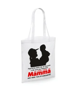 SHOPPING BAG IN COTONE: Simpatica e divertente shopping bag in cotone, ideale per festeggiare la festa della mamma o per fare un regalo unico e originale alla zia, alla madrina, una sorella, una cugina o un’amica in maniera unica e originale.