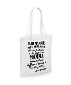SHOPPING BAG IN COTONE: Simpatica e divertente shopping bag in cotone, ideale per festeggiare la festa della mamma o per fare un regalo unico e originale alla zia, alla madrina, una sorella, una cugina o un’amica in maniera unica e originale.