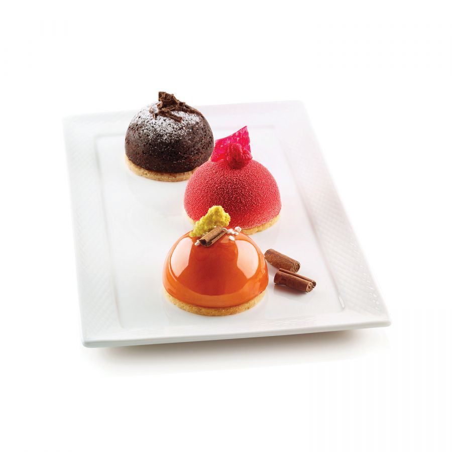 Elegante e creativa, una collezione composta da forme e stili diversi ma complementari che si adattato ad ogni occasione. Un mix di linee contemporanee e colori vivaci per una serie di stampi che si prestano a varie preparazioni in cotto e semifreddo. Gli stampi in silicone Silikomart sono sofisticati, alla moda e originali per rappresentare le diverse tendenze in cucina. Dimensione: Ø 60 h 30 mm Volume: 6×60 ml Tot. 360 ml
