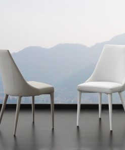 La sedia design Sinfonia presenta uno schienale alto dalla forma comoda, caratterizzata dal rivestimento in ecopelle della seduta. Facile da abbinare con qualsiasi tavolo moderno anche grazie ai colori classici e neutri come bianco, sabbia e titanio. Potrai scegliere tra due versioni: gambe rivestite in ecopelle oppure gambe verniciate in tinta