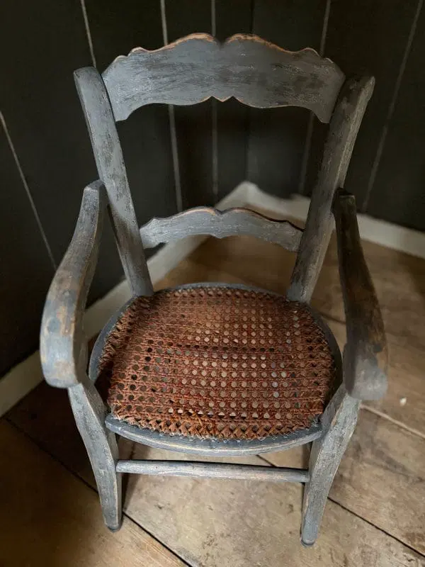 Très jolie petite chaise pour enfant avec cannage d’origine, belle polychromie également d’origine ,en parfait état