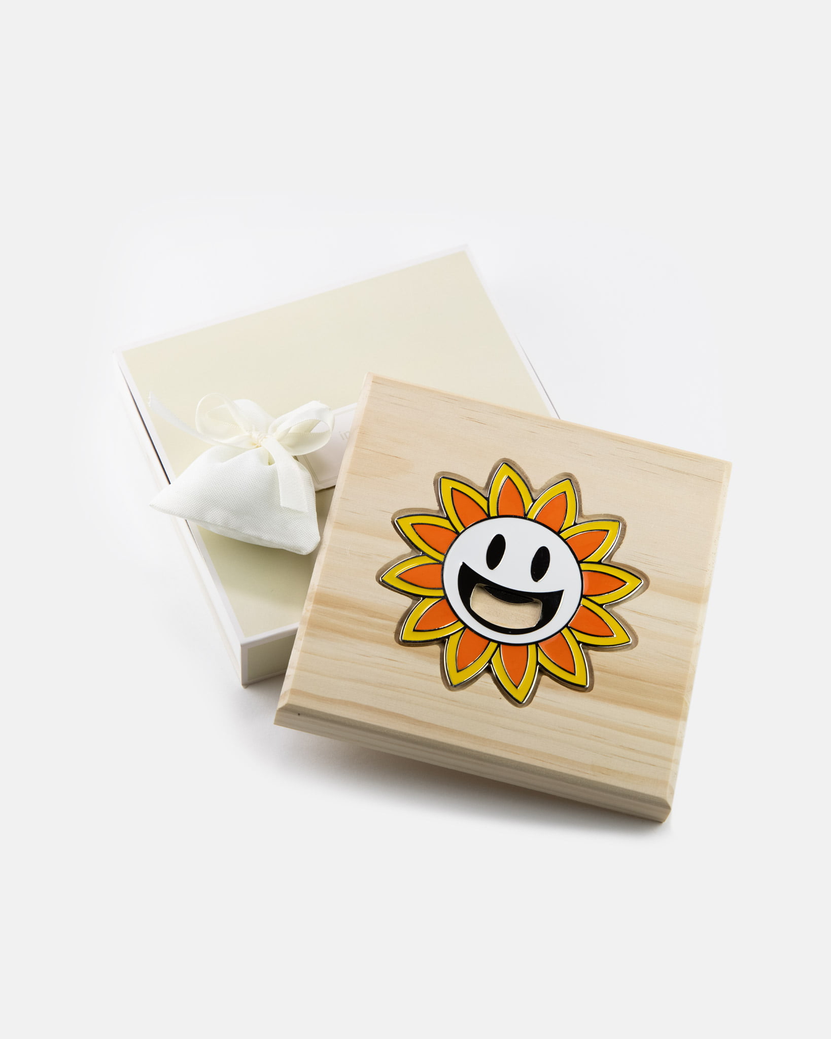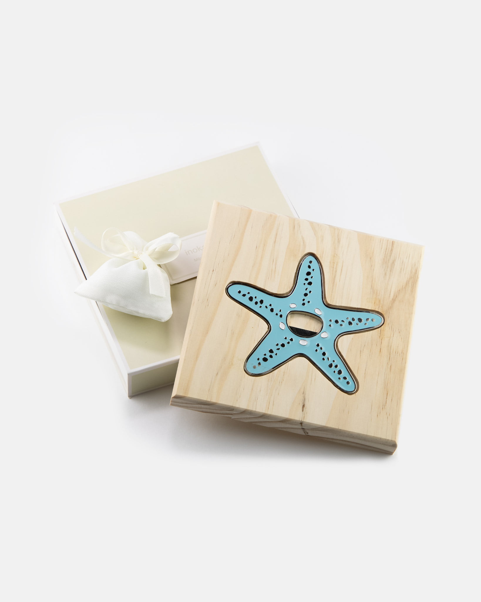 Sottopentola con base in legno e apribottiglie smaltato a forma di :