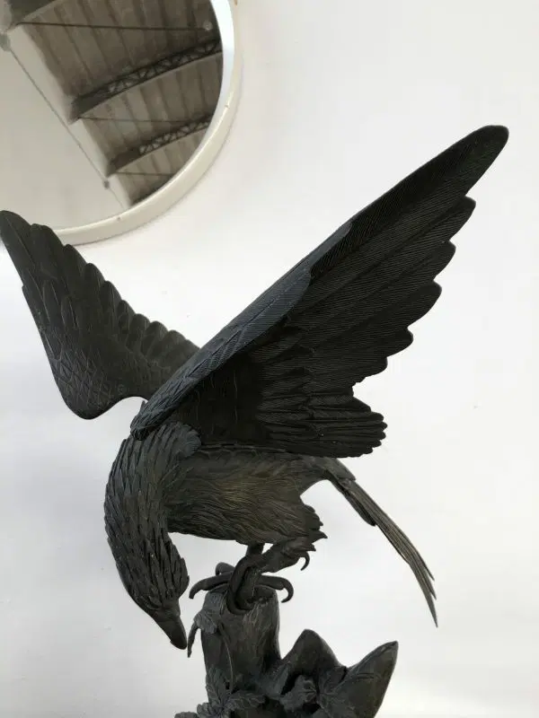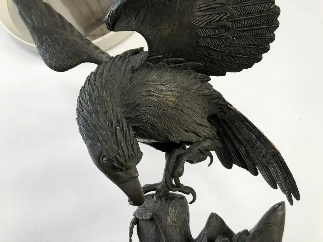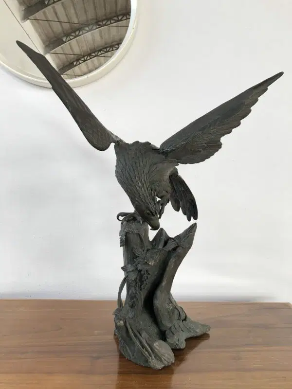 Statua In Bronzo che raffigura una Aquila Sulla Roccia
