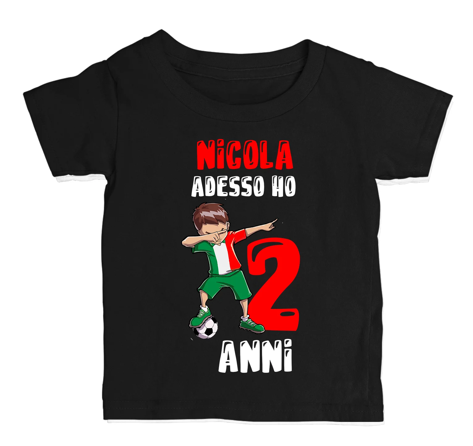 T-Shirt Maglietta Compleanno Bambino PERSONALIZZABILE CON NOME E ANNI Calciatore DAB Buon Compleanno Regalo Compleanno