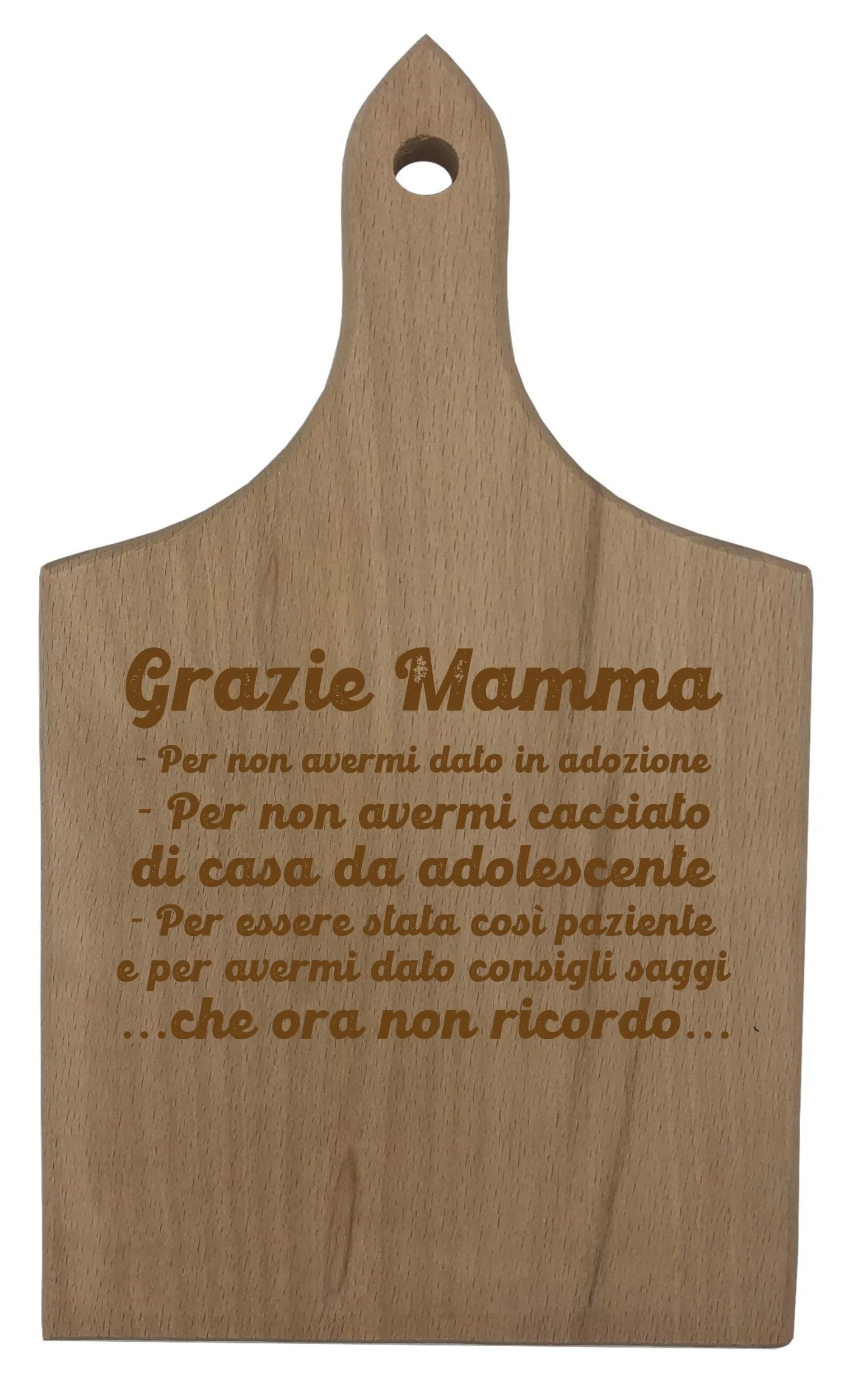 Questo simpatico e divertente tagliere da cucina può essere un simpatico regalo utile a qualsiasi ricorrenza come Compleanno, Festa della Mamma, Natale o semplicemente per stupire e rendere felice la tua mamma. Un’idea regalo unica e originale che renderà felice chiunque grazie alla frase divertente di questo tagliere con incisione in legno.