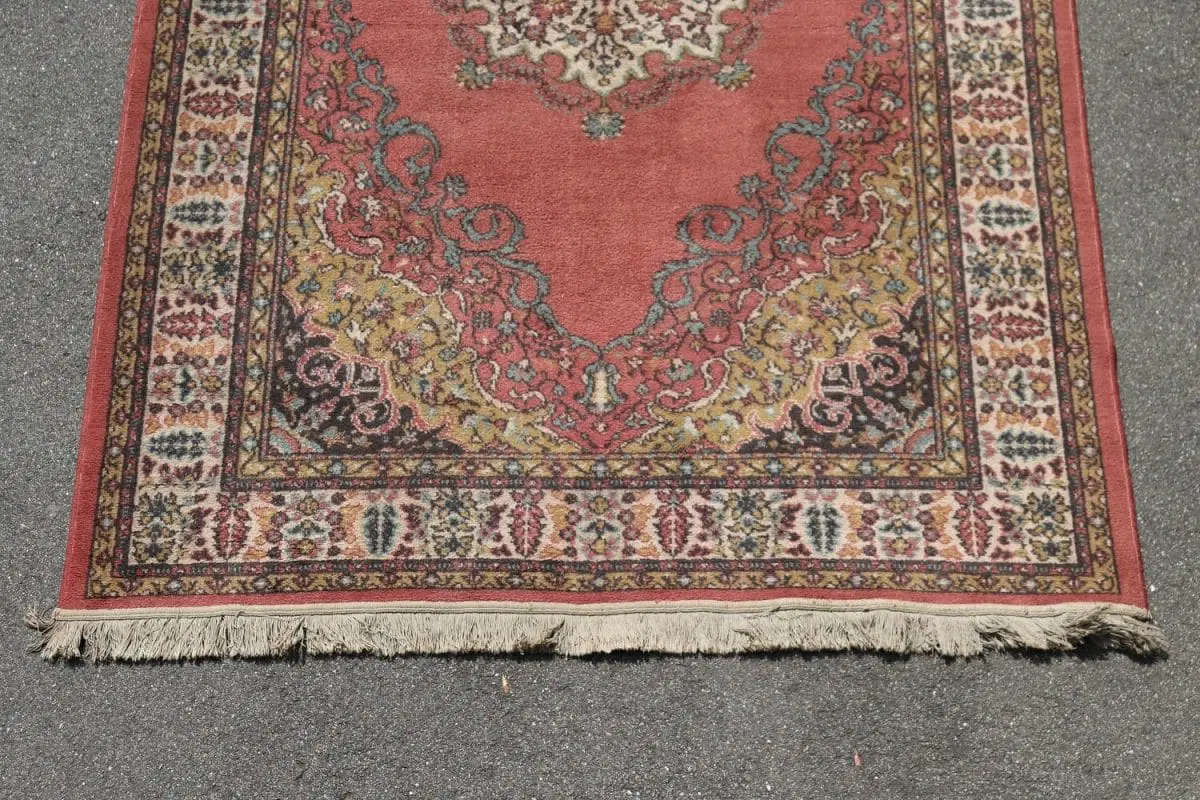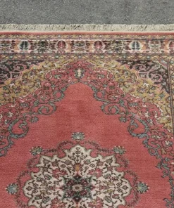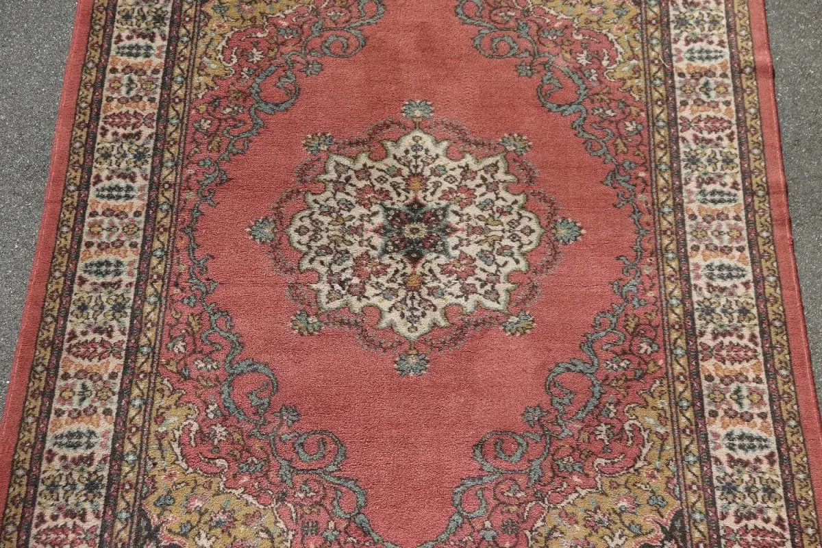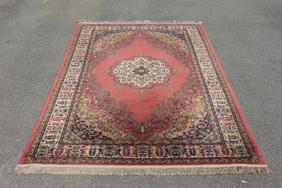 Bellissimo tappeto kashmiro del XX secolo (anni ’80 circa) realizzato a mano in lana, prodotto in Italia. Questo fantastico tappeto è nel colore principale rosa con un motivo a medaglione centrale. Decorazione elaborata e ricca. Condizioni usato. Proposta ad un’ottimo prezzo trattabile vi invitiamo ad inviarci le vostre proposte di acquisto le valuteremo con piacere.