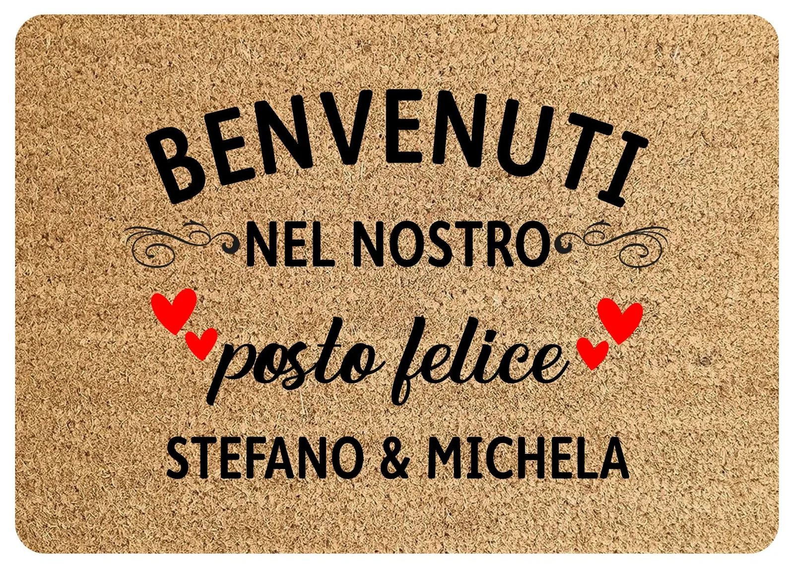 TAPPETO ZERBINO DIVERTENTE: Un tocco di allegria per l’ingresso di casa! Sorprendi i tuoi cari con un regalo unico e originale: il nostro tappeto zerbino personalizzabile dedicato alla famiglia. Con dimensioni di 60×40 cm, questo simpatico accessorio è l’ideale per festeggiare una coppia di amici o parenti, donando un tocco di originalità all’ingresso della loro casa.