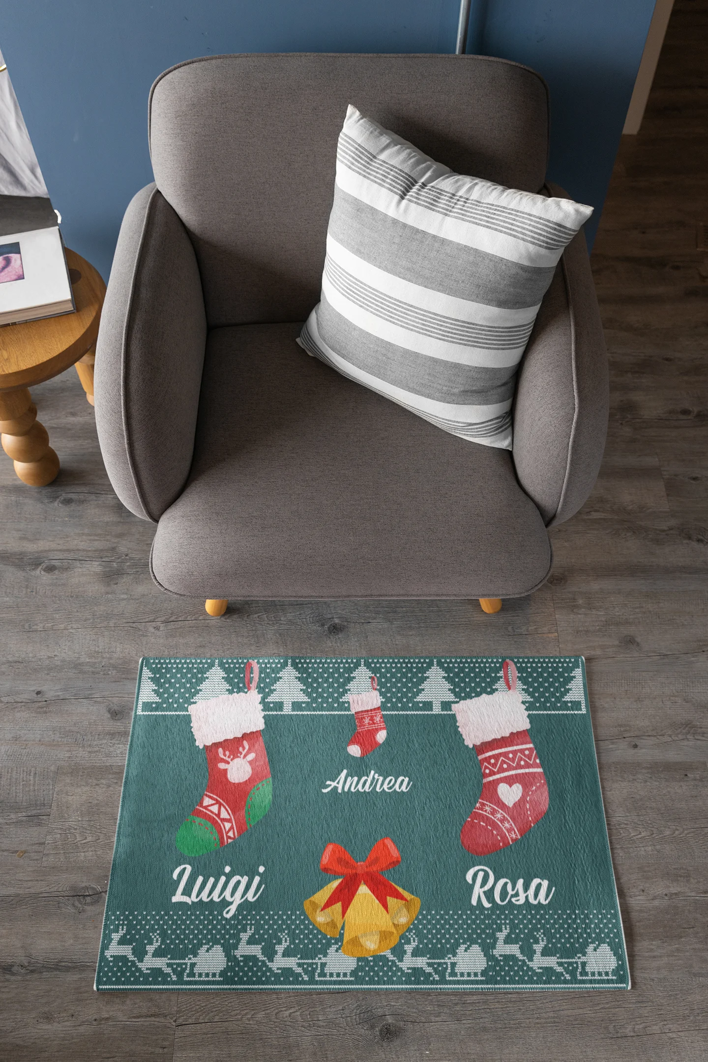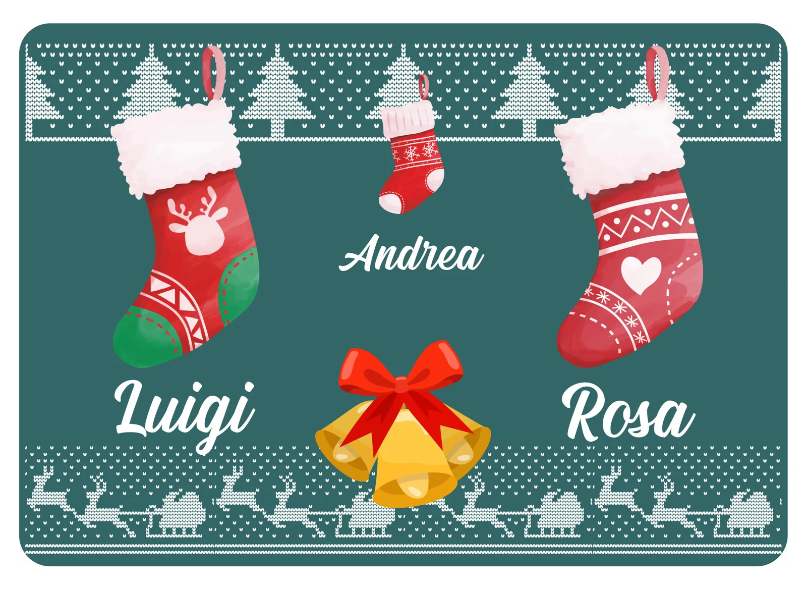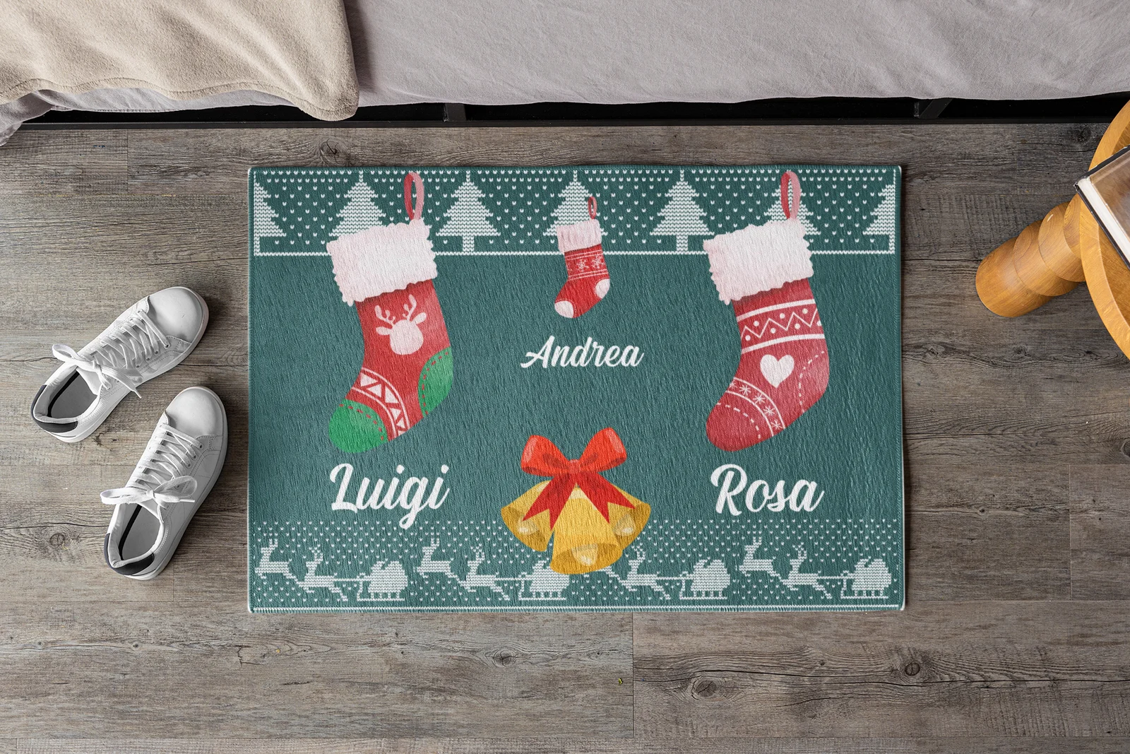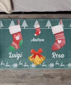 Tappeto Zerbino Natale personalizzato con nome Famiglia figlio Fantasia Natalizia Calze Ingresso Casa Regalo Natale 60×40 cm