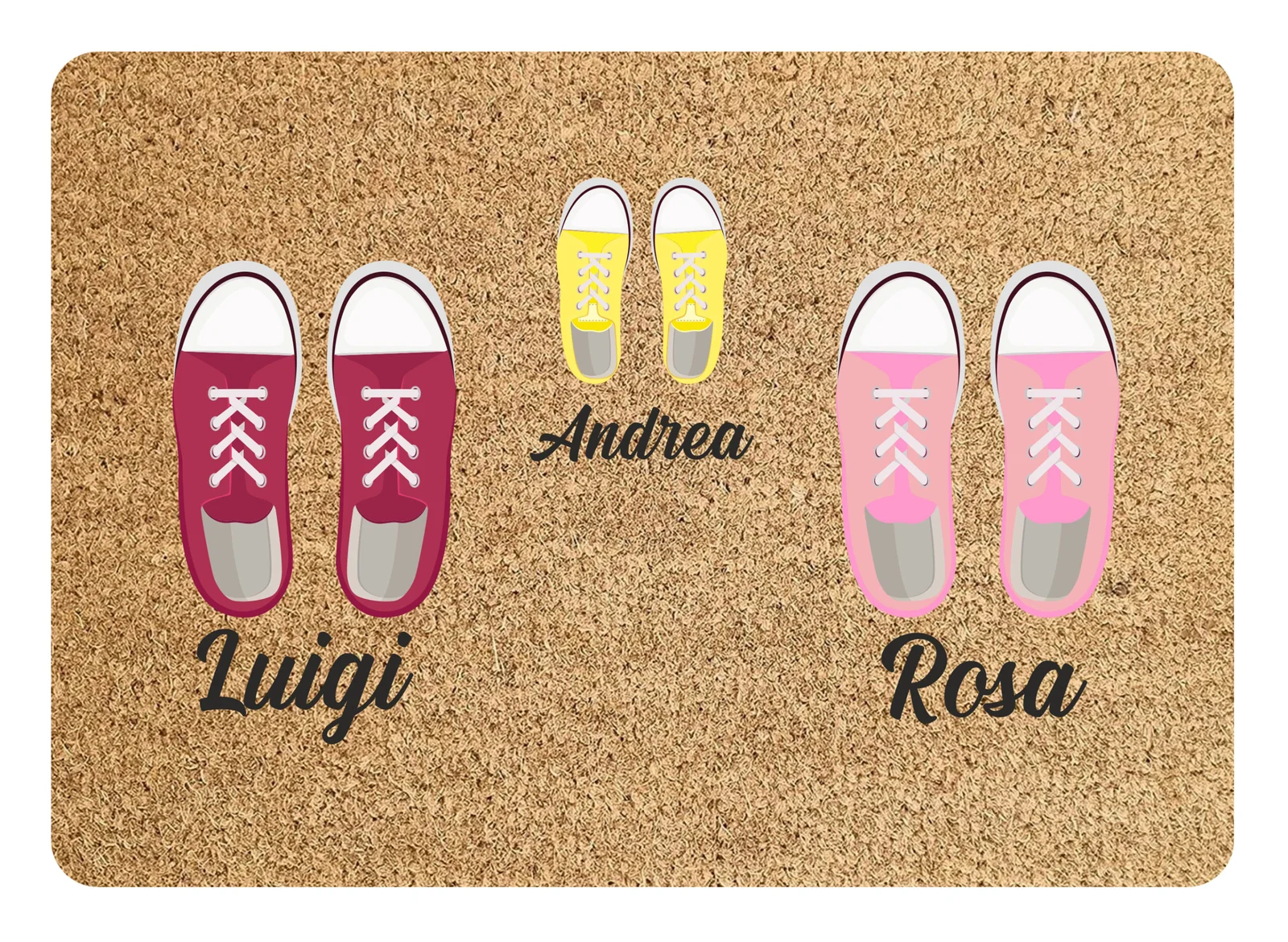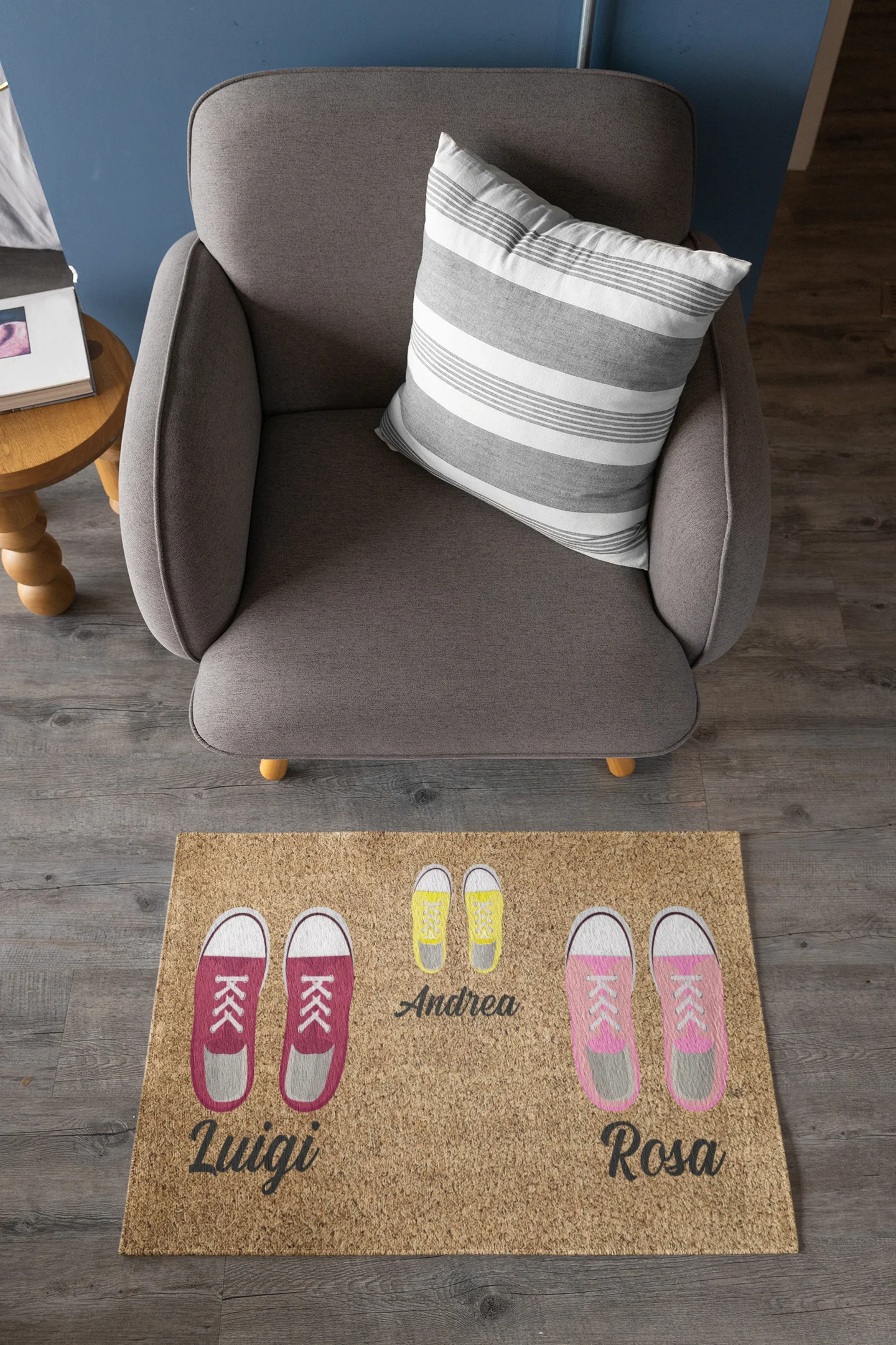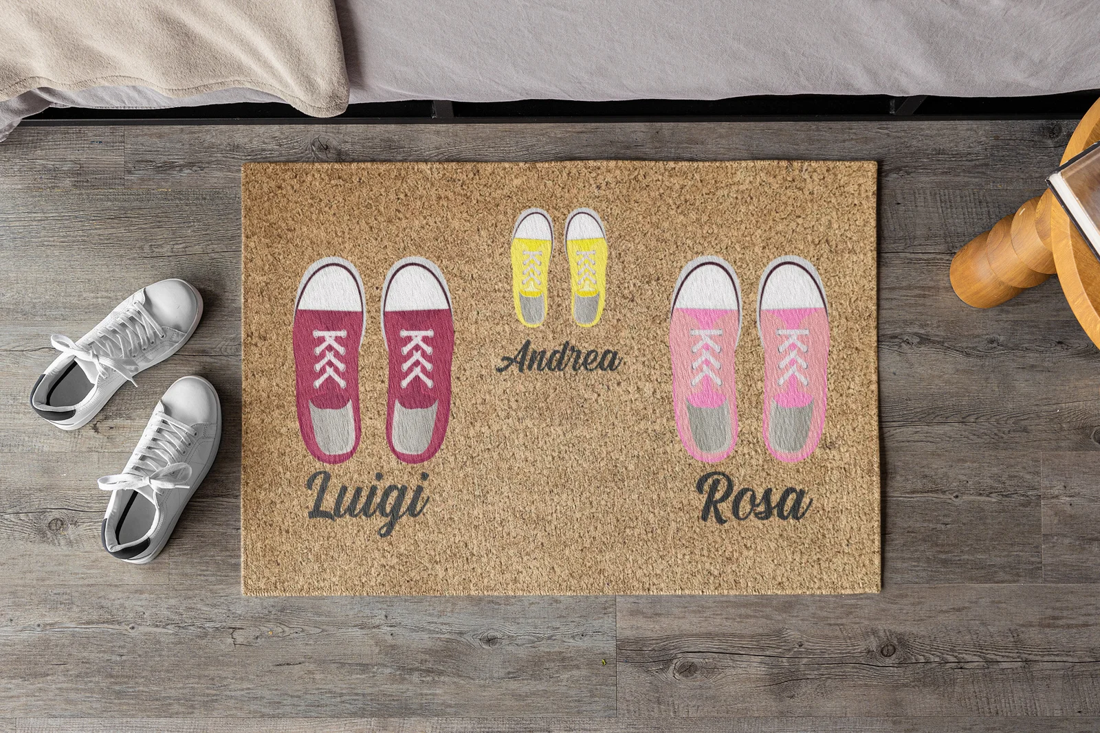 TAPPETO ZERBINO DIVERTENTE: Simpatico tappeto personalizzabile dedicato alla famiglia, un’idea regalo unica e originale per festeggiare una coppia di amici o parenti. Ideale come decorazione per l’ingresso di casa. Dimensioni 68×48 cm (la misura potrebbe variare leggermente, previa disponibilità).