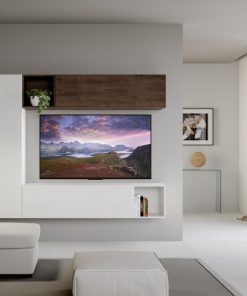 Parete da salotto moderna Tarika, disegnata da una struttura semichiusa attraverso l’utilizzo di 6 elementi sospesi. Tarika è composta da 2 pensili orizzontali, 1 verticale e 2 vani a giorno realizzati in legno, esempio di design e lavorazione Made in Italy.