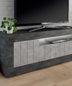 Tarquinio – Base mobile tv in legno 3 ante colore cemento e ossido cm 138x42x56h