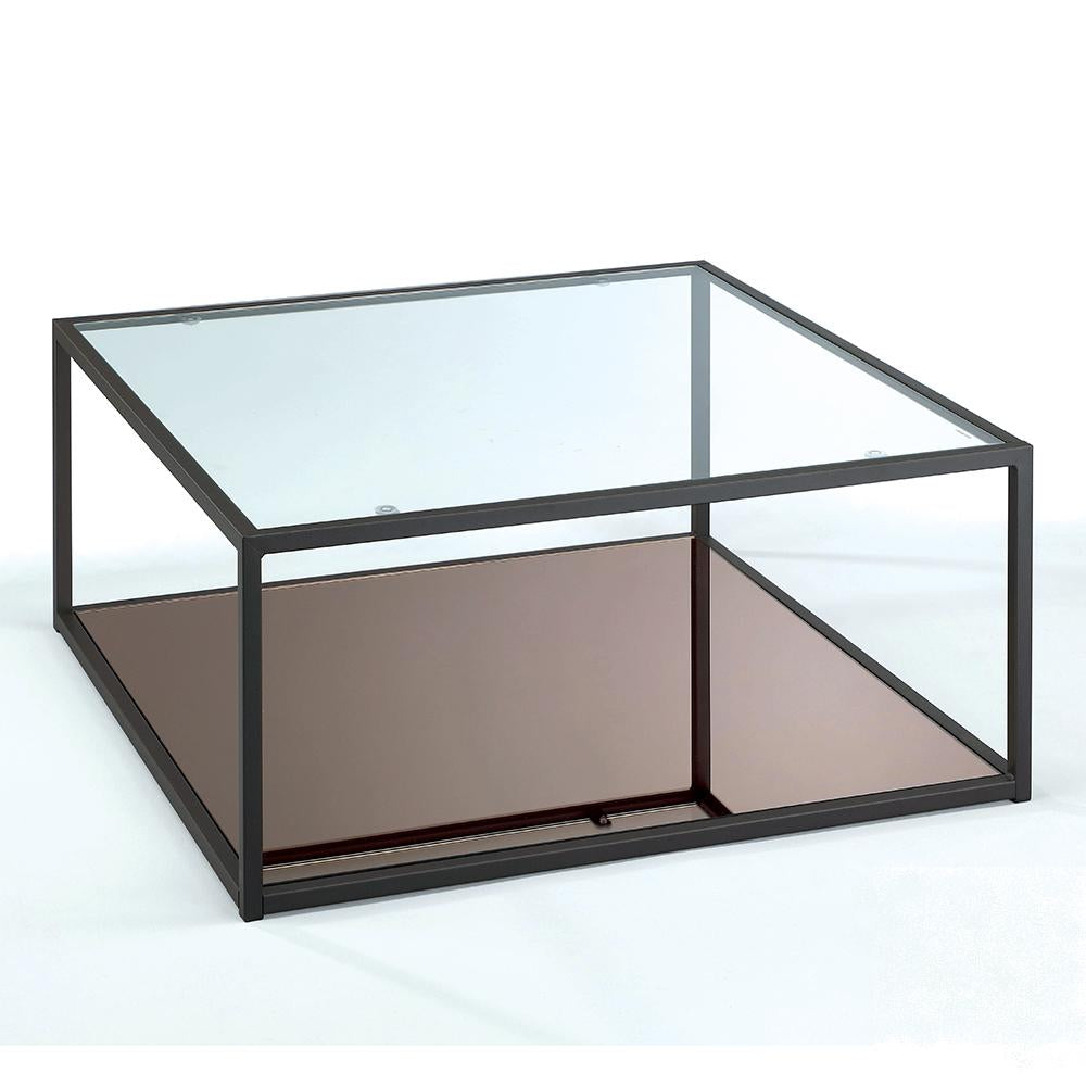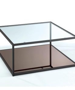 Moderno ed elegante tavolino quadrato basso da soggiorno, composto con elementi di stile moderno e realizzato con un look semplice ma unico e inimitabile. La struttura si presenta in acciaio di colore nero opaco con una forma quadrata semplice e lineare priva di decorazioni e viene completata da un piano inferiore realizzato con uno specchio dal colore oro rosa molto glamour ed un top in vetro temperato trasparente. Adatto ad ogni ambiente, grazie alla fantasia si crea l’opportunità di giocare con gli elementi dell’arredamento in modo da creare delle fantastiche combinazioni che rendono luminoso, accogliente e soprattutto moderno e giovane il tuo soggiorno.