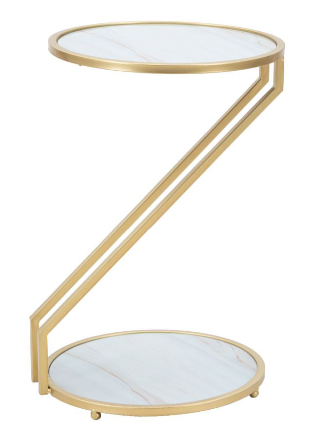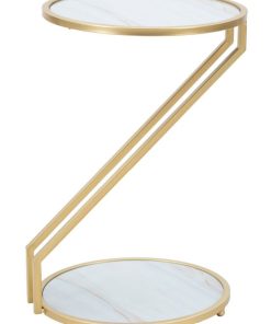 Interessante tavolino rotondo e basso definito da un design moderno e innovativo grazie alla struttura a Z che sorregge due eleganti piani realizzati in vetro con una sfumatura che ricorda l’effetto marmo. Il nostro tavolinetto sarà perfetto se inserito affianco al divano nel salotto, come portalampada o come appoggio per qualsiasi oggetto di design.