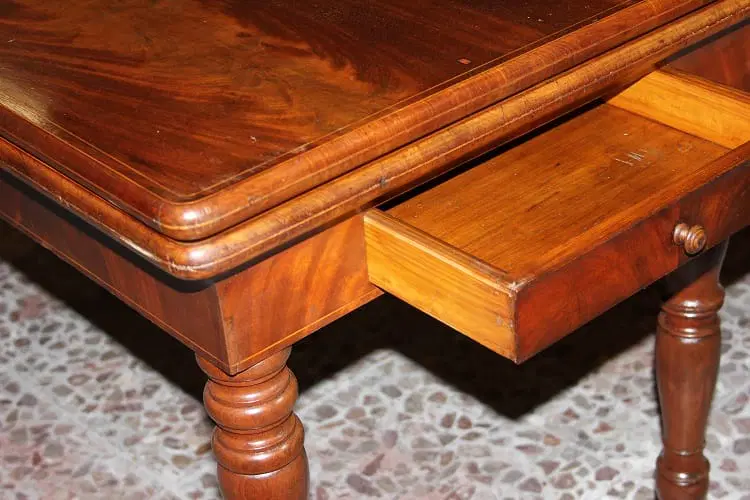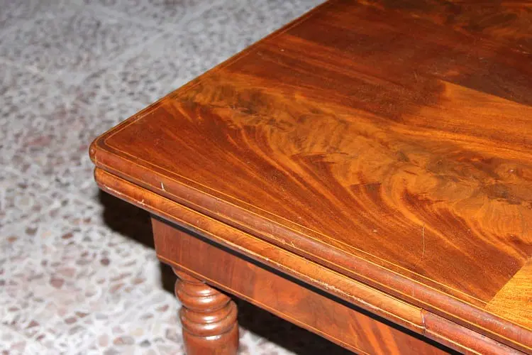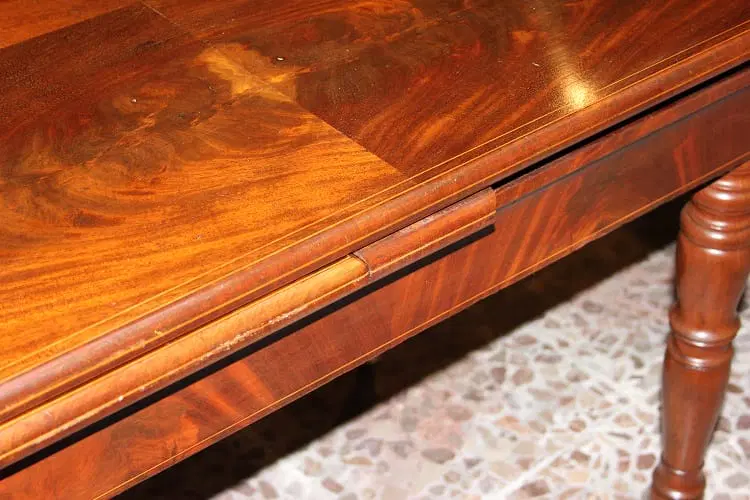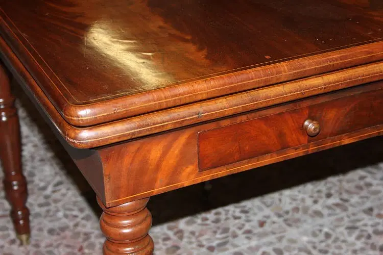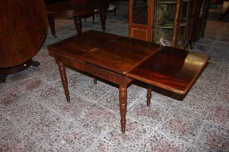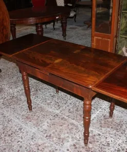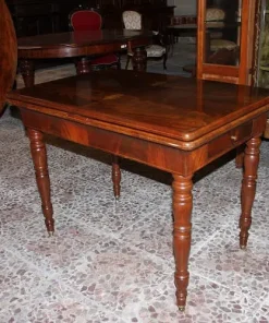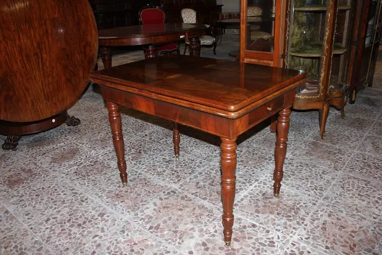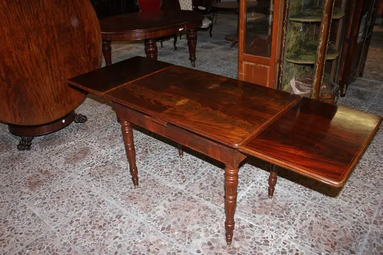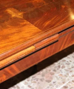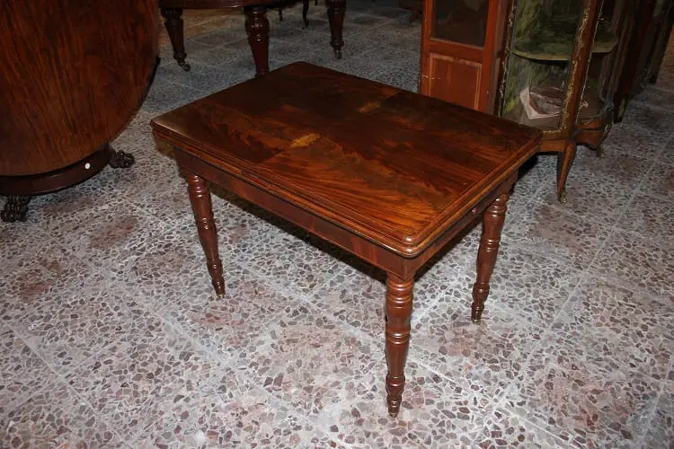 Tavolino Carlo X con alette in legno di mogano con filetto di intarsio