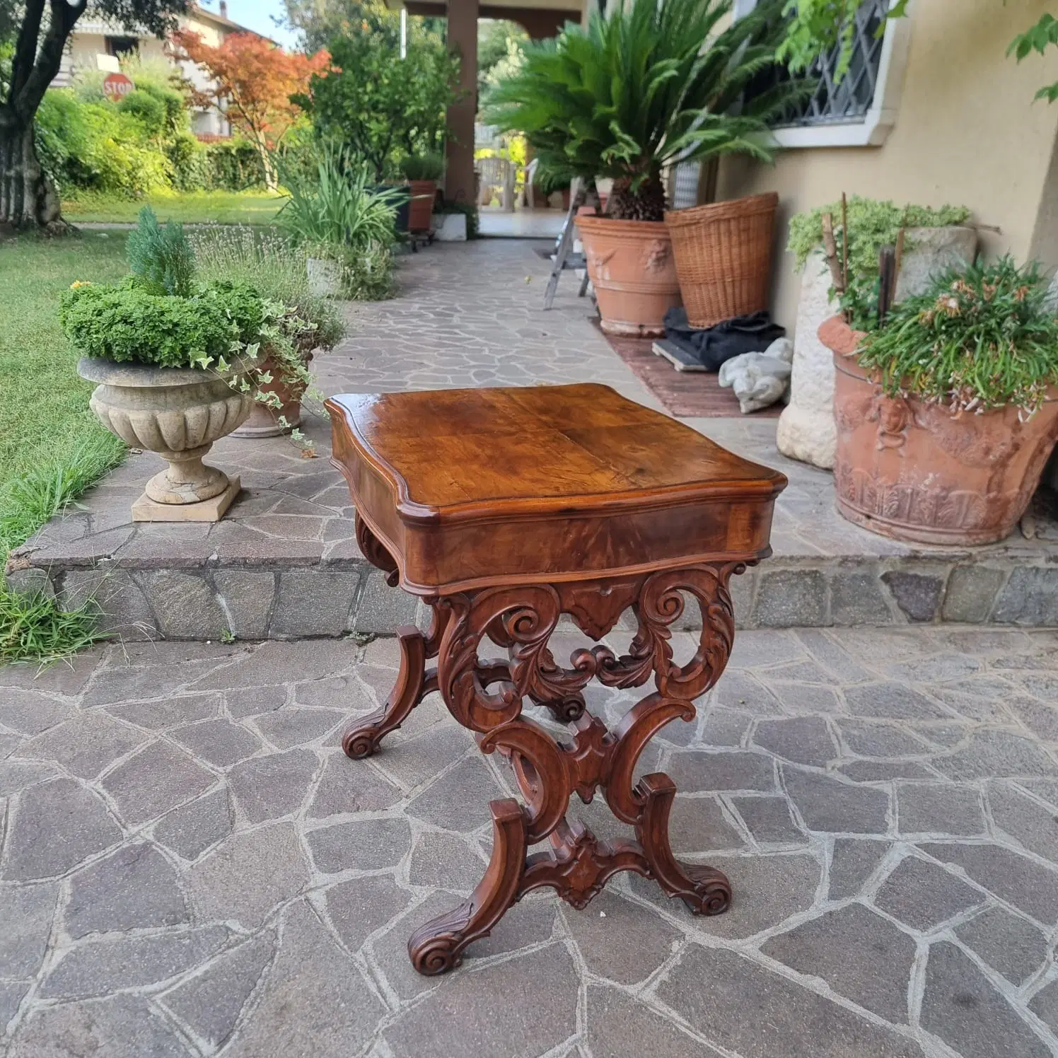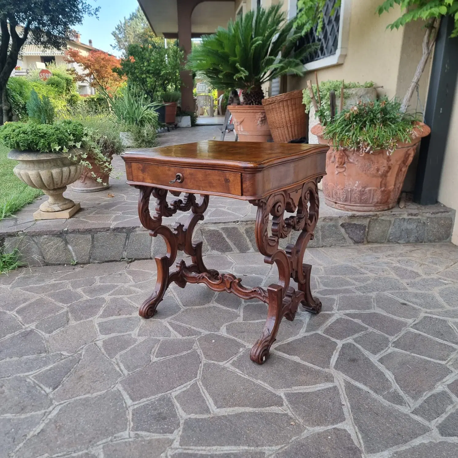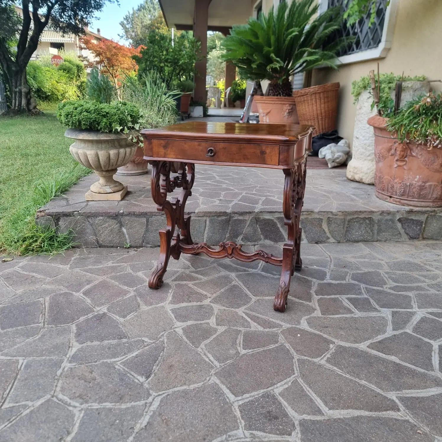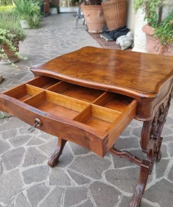 Tavolino da lavoro in noce del 1860 con inserti in ciliegio Luigi Filippo
