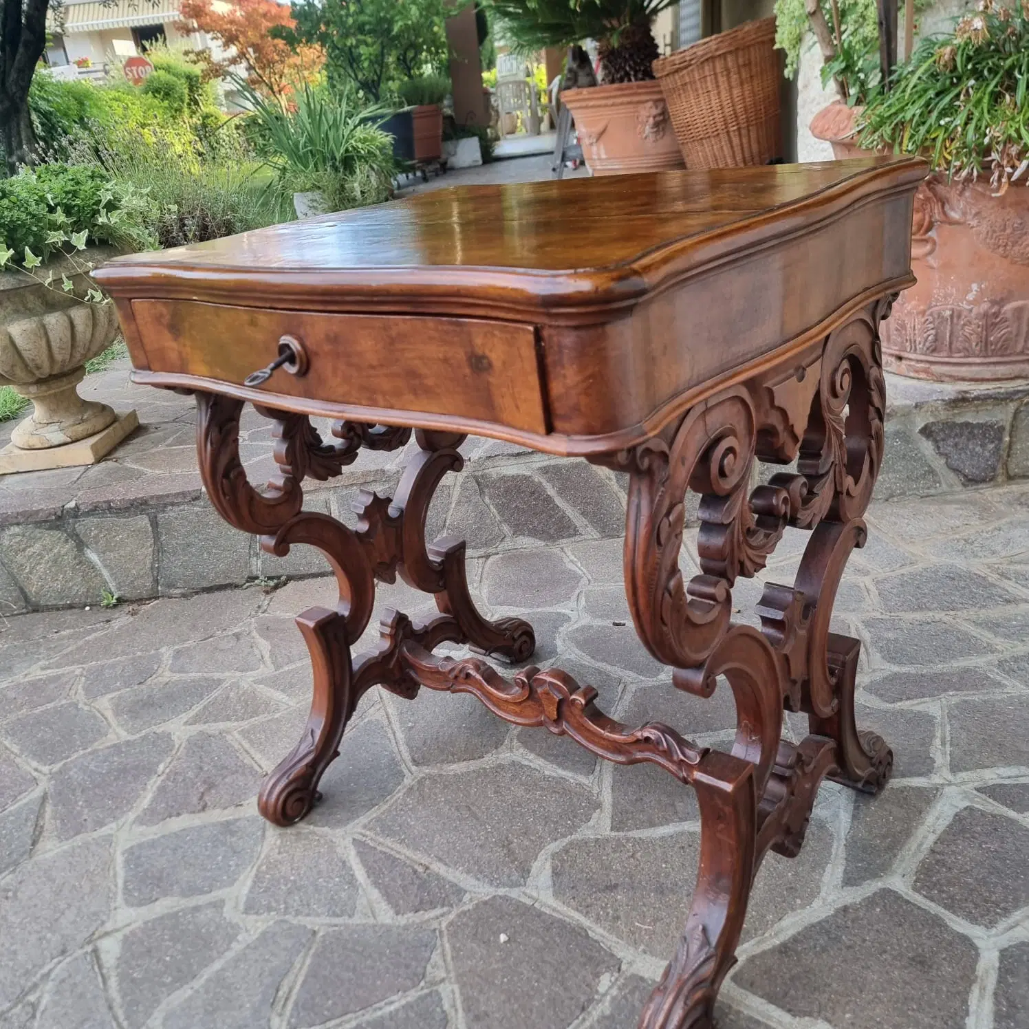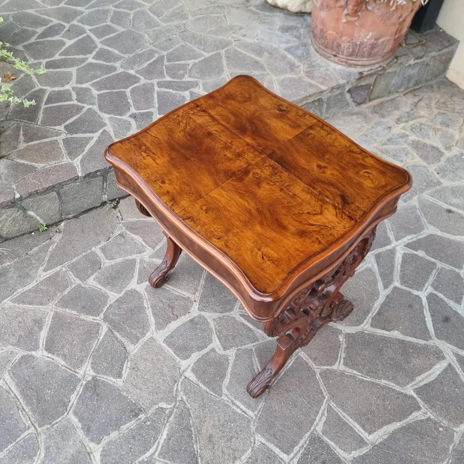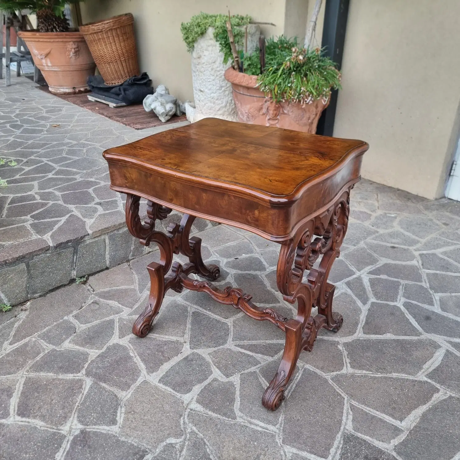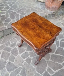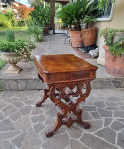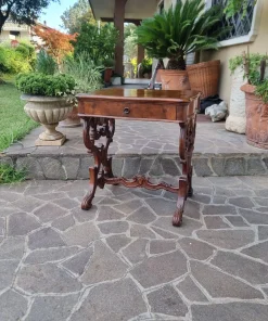 In buone condizioni generali, il tavolino presenta una patina del tempo che ne accentua il valore storico e artistico. Le dimensioni compatte lo rendono adatto a qualsiasi ambiente, sia come complemento d’arredo in un salotto che come mobile funzionale in uno studio. Le misure precise sono 63x54xh71cm, un formato versatile che si adatta facilmente a diversi contesti abitativi.