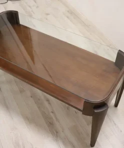 Tavolino design italiano anni ’50, di qualità pregiata. Il tavolo è in legno di faggio e piano in vetro. In buone condizioni vintage. Prezzo trattabile inviate le vostre proposte di acquisto le valuteremo con piacere.