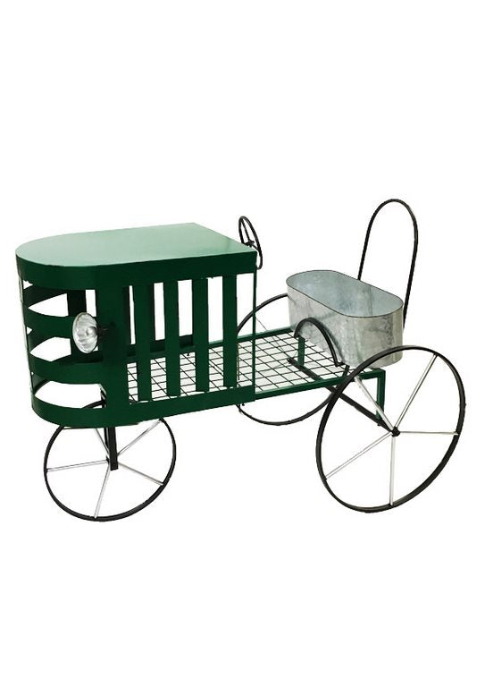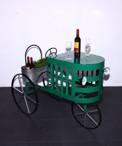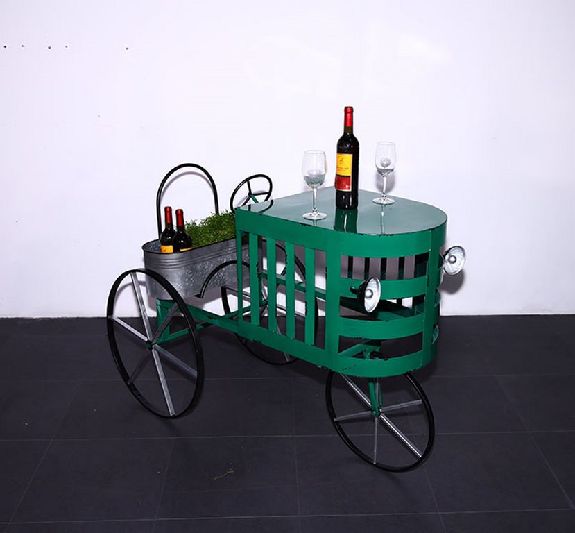 Simpatico tavolino da salotto dalle caratteristiche che ricordano un trattore, accompagnato da fari e ruote. Il nostro tavolino da caffè è prodotto in metallo e sono utilizzabili il ripiano e il cesto in metallo per riporre bottiglie o altro.