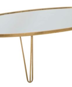 Tavolino da salotto ovale in metallo dorato piano con specchio cm 160x76x40h