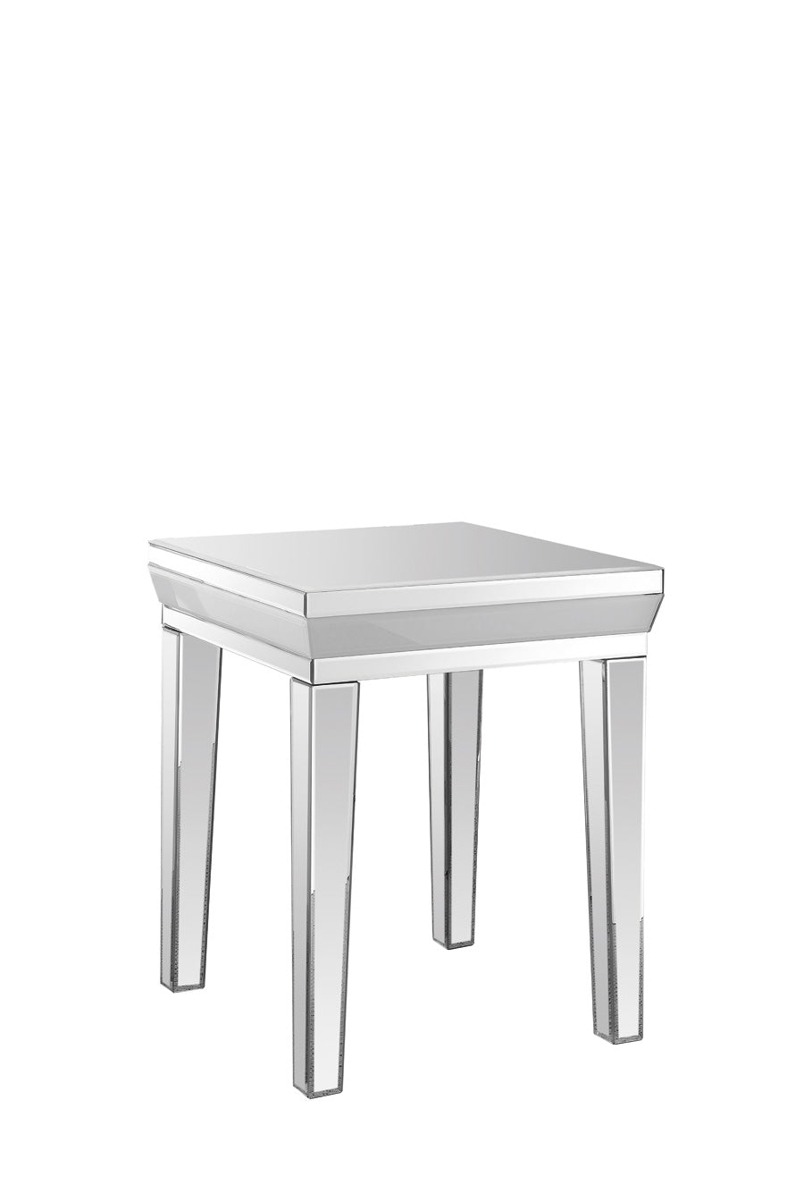 Comodino da camera in legno, colore bianco, con specchi. Dal design moderno, è perfetto per chi ama un arredamento stravagante ed elegante, per arredare la propria camera con stile e raffinatezza. Da utilizzare anche come tavolino basso da collocare affianco al tuo divano moderno in salotto