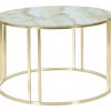 Tavolino rotondo basso base in metallo dorato piano in vetro colorato cm 75x48h