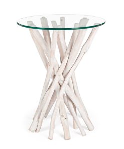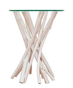 Geniale tavolino basso da salotto di forma tonda, un’idea innovativa per un arredamento unico nel suo genere. La particolarità di questo tavolino da caffè è evidente nell’unione di due elementi opposti, come rami di teak che formano la base e vetro trasparente del piano, il risultato è sorprendente e fantasioso.