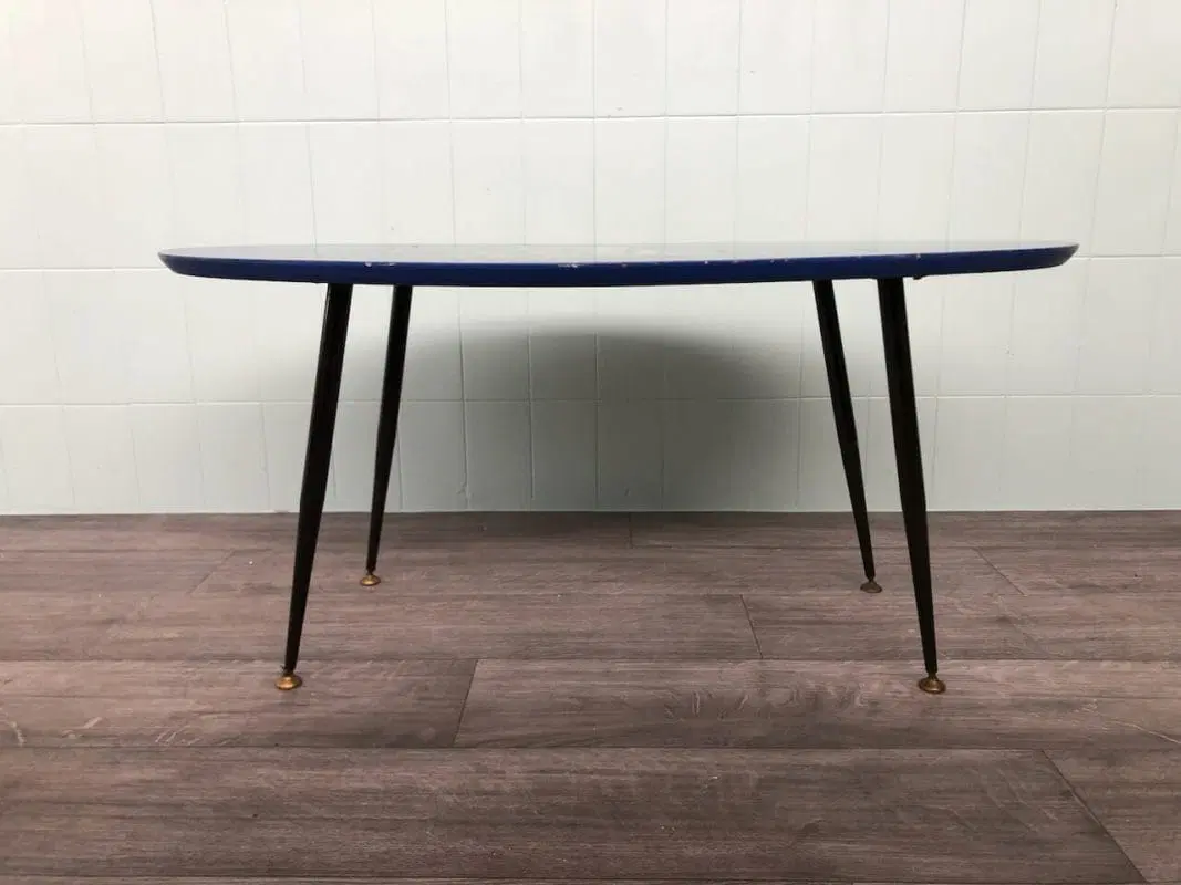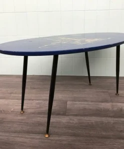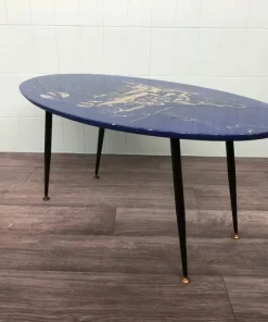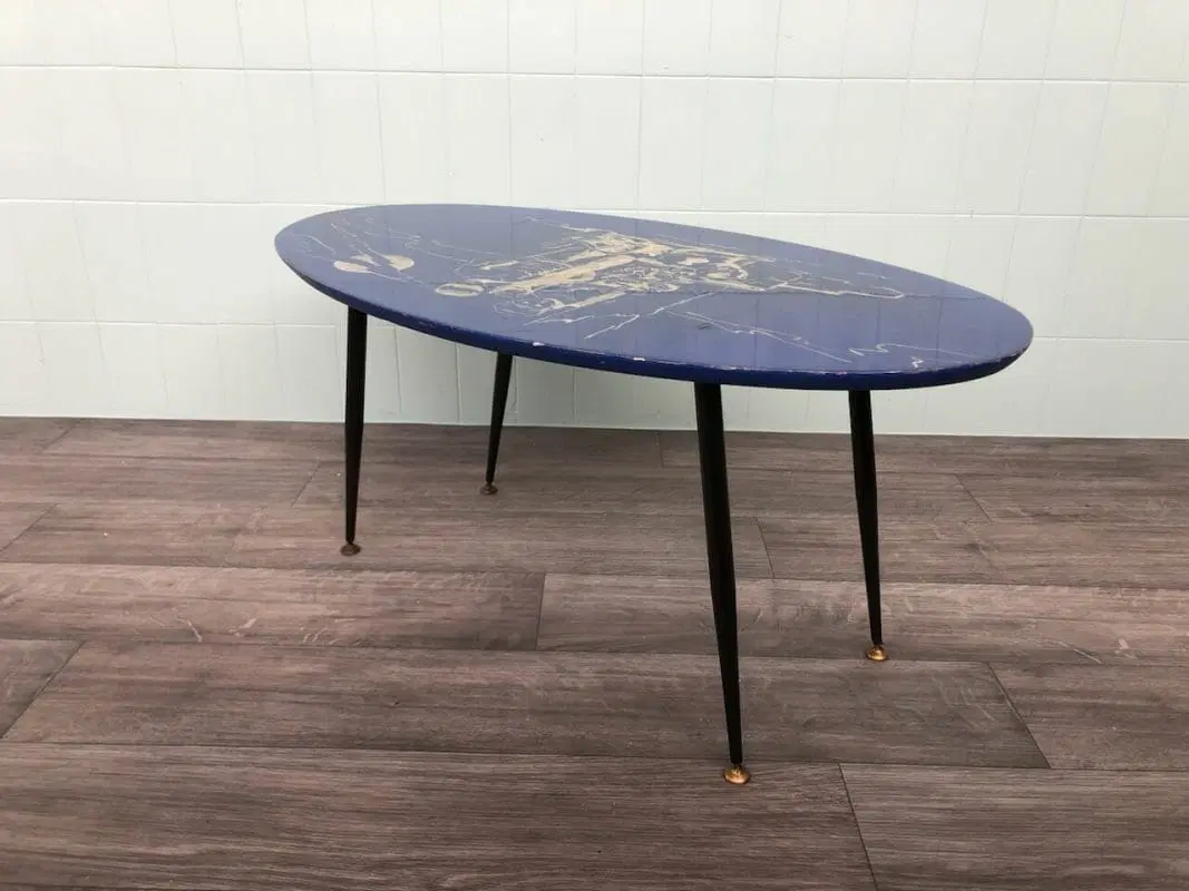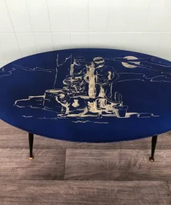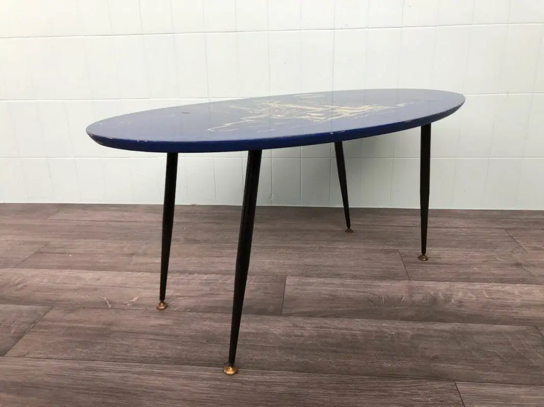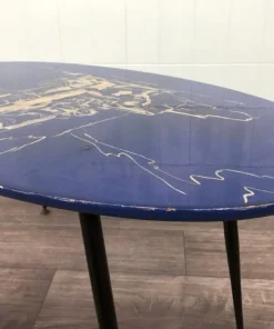 Gambe In metallo e piano in legno laccato in cui è stato fatto un dipinto a mano.
