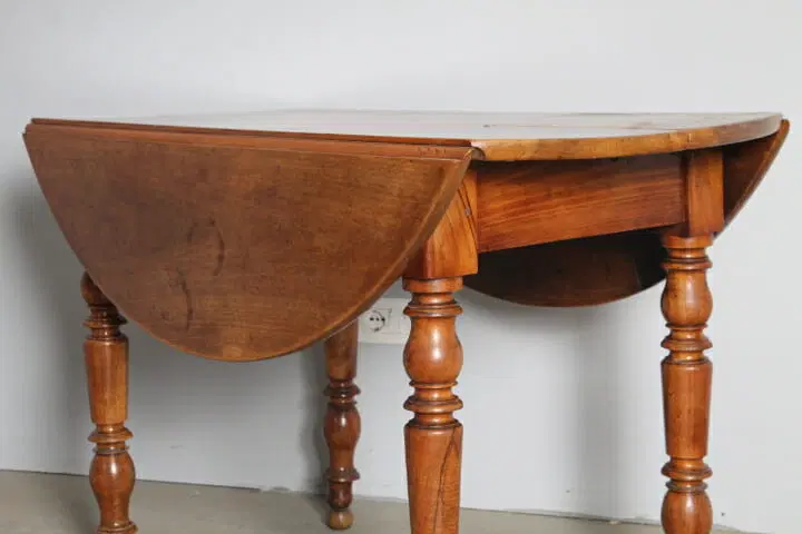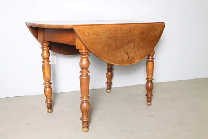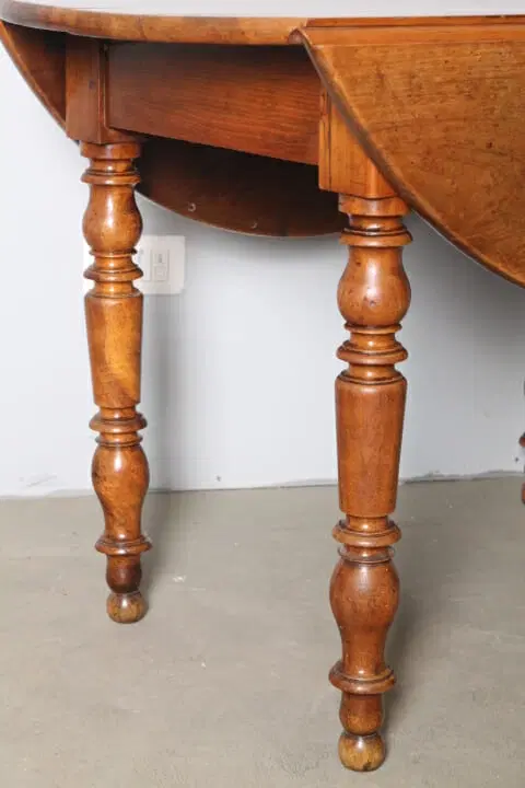 Antico tavolo a bandelle laterali in noce massello epoca del Luigi Filippo, metà 800 di grande qualità , molto belle le torniture e la venatura della noce impiegata. Restaurato mantenendo la patina.