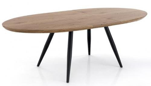 Tavolo allungabile con piano ovale in legno e gambe oblique in metallo cm 160/200x93x75h