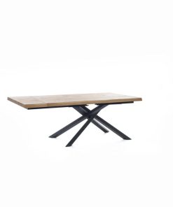 Tavolo da soggiorno da cm 160 allungabile a cm 240 per mezzo di 2 allunghe da cm 40. Questo particolare e robusto tavolo da pranzo conquista per la struttura con gambe incrociate realizzata in metallo disponibile in nero o bianco, mentre il piano associato, si presenta in legno rovere, per chi non vuole rinunciare all’aspetto naturale del legno che conferisce all’ambiente un’atmosfera familiare ed accogliente.