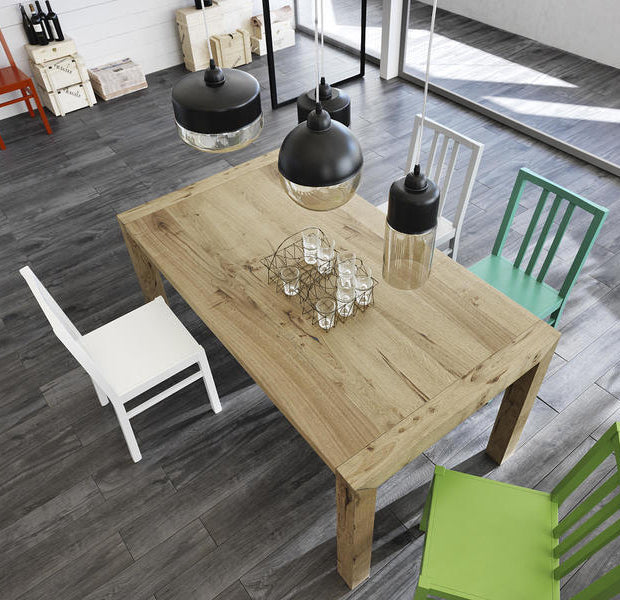 Design minimalista e finitura rovere fanno di questo tavolo da cucina, il tavolo ideale per arredare al meglio ogni ambiente della tua casa. Che sia soggiorno, sala da pranzo o salotto, il nostro tavolo allungabile è perfetto dappertutto e si farà apprezzare per la sua funzionalità, infatti, la presenza di 2 allunghe poste sotto il piano, permettono una facile e agevole trasformazione, per i vostri ospiti inaspettati.