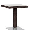 Raffinato e funzionale tavolo quadrato composto da struttura in alluminio interamente rivestita in polyrattan con il classico intreccio, sempre elegante dappertutto. Inoltre, il nostro tavolo da bar è fornito di piano in vetro scuro temperato, che accresce la raffinatezza del design.