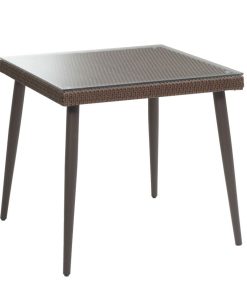 Tavolo da giardino color noce in polyrattan e vetro cm 90x90x77h